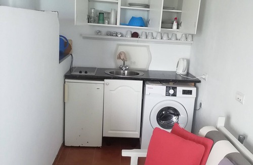 Bedrooms: The main bedroom on the left has a queen size bed and large wardrobe. The one on the right which is off the main hallway has 1 single and 1 double beds and also has an en-suite bathroom .The terrace has a terrace room with a small working kitchen. The kitchen is fully equipped with glasses, dishes, pans, small fridge, etc.There is also a wahing machine. Outside there is a large terrace overlooking the sea with table, chairs, loungers, clothes airers, and umbrella.