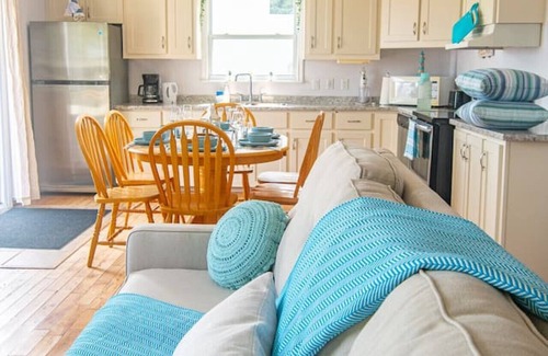 Welcome to our family-friendly waterfront cottage on Tea Hill Beach! This charming retreat offers everything you need for a memorable getaway with your loved ones. Enjoy stunning views with direct access to the beach and lots of outdoor fun and relaxation. Gather around the fire pit for s'mores under the stars, savor meals on the deck with panoramic water views, and explore nearby trails and parks for adventure. Unplug and reconnect at our cottage, where cherished family moments await!