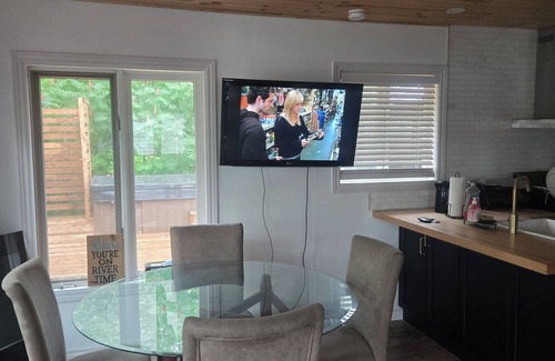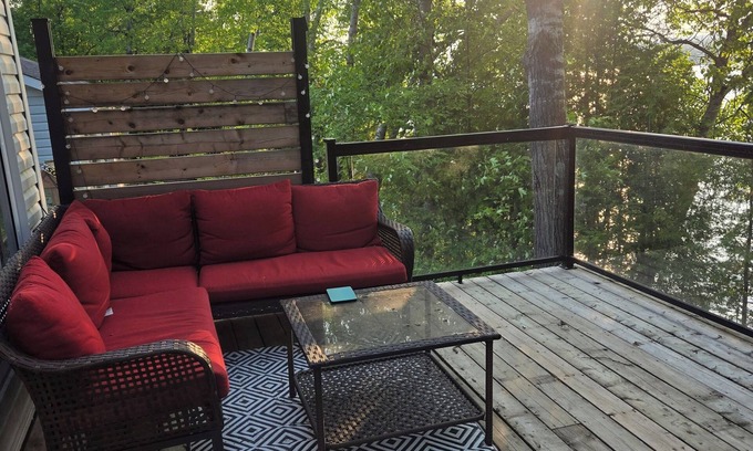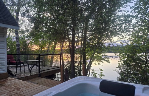 2 bedroom cottage directly on the Ottawa River. Watch the sunset from the beach area or upper deck area with hot tub and gazebo. Enjoy night time fires in the spacious front yard or do some stargazing. Pets are welcome. Located 5 minutes from Plaisance National Park filled with trails and lots of outdoor activities.