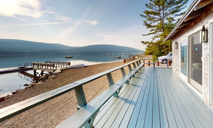 The outdoor spaces are something special, whether you're sipping your coffee on the deck at sunrise, launching a rented kayak, or setting up the provided chairs and towels on the pebbly shore. In the evenings, watch the setting sun illuminate Sargent Mountain as you light the gas grill for dinner, enjoy the built-in seating on the deck, and gather around the firepit for s'mores and ghost stories.