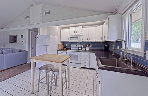 The home is a ranch style with a cathedral ceiling over the open living/dining/kitchen area, 3 bedrooms, 2 baths, gas fireplace and central A/C. It is outfitted with a fully equipped kitchen, propane gas grill, outdoor shower, bath towels and bedding. The home also has multiple portable office desks, chairs, WiFi printer and automated whole house standby generator.