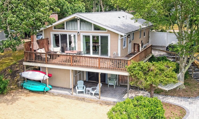 Waterfront Getaway w/Private Dock, Deck, Central A/C, & Kayaks is located in East Falmouth. Waterfront Getaway w/Private Dock, Deck, Central A/C, & Kayaks provides accommodation, featuring Parking, Balcony/Terrace, Security/Safety, among other amenities. This House features Parking, Balcony/Terrace, Security/Safety, to make your stay a comfortable one.