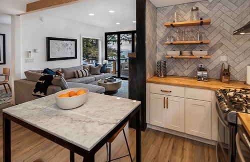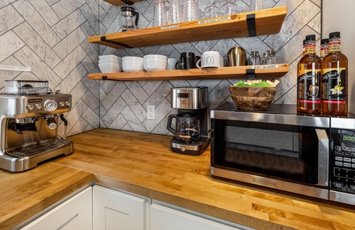 You'll find the kitchen is well stocked with spices and quality cookware for guests to prepare meals during their stay. An island with seating and stainless-steel appliances make this kitchen a cook's dream. The "little extras" will help make your use of the kitchen enjoyable. We supply a coffee grinder as well as whole espresso beans in addition to a few flavored syrups during your stay.