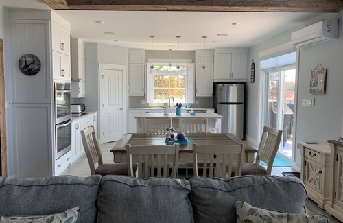 This stunning home sleeps 6 people on the main floor (additional level can be opened for more guests- please contact host), has an open concept living room with fireplace, kitchen, dining area, all overlooking the water.