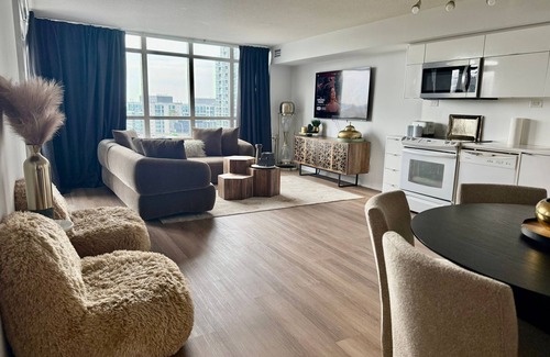 This Toronto aparthotel provides complimentary wired and wireless Internet access, with a WiFi speed of 500+ Mbps (good for 6+ people or 10+ devices). 55-inch Smart televisions come with digital channels and Netflix.