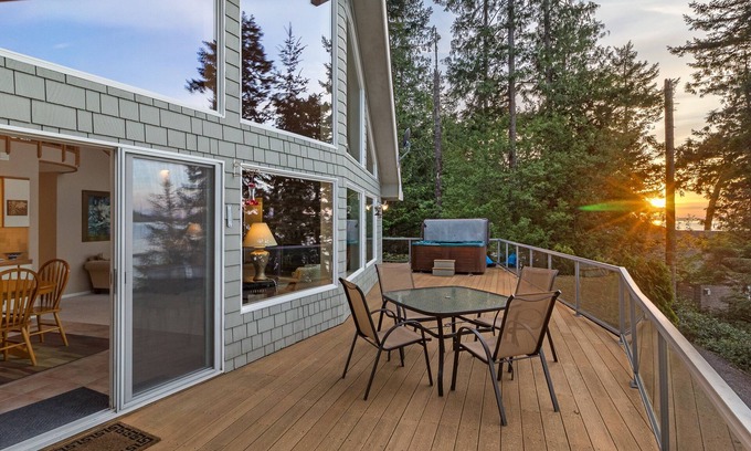 Waterfront home with a hot tub and views of Spieden Island. Sunrise and Sunset House. Your quiet home away from home, located just one mile northeast of Roche Harbor village, is waiting! The perfect spot to escape from the mainland, away from traffic noise and crowds and ease into 'island time'.