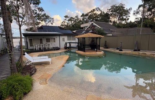 Escape to your private lakefront paradise at Waterfront Oasis Villa, a Bali-inspired haven nestled in Lake Munmorah. Just a 7-minute drive from Birdie Beach, this peaceful retreat offers stunning water views, lush tropical gardens, and an atmosphere of total relaxation.