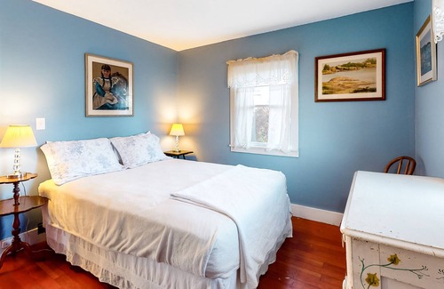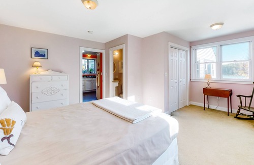 Take in the coastal air on the front porch with seating as well as 180-degree views of the harbor. The sunny and open interior presents a handy mudroom for storing gear, a gorgeous living area with a flatscreen TV, as well as a fully-equipped kitchen with all the necessities! The main suite sits on one end of the home for added privacy and features a private bathroom. This amazing home is perfect for those who want to be out of the way without being too far away from what the Midcoast has to offer. Kayak into Muscongus Bay or spend a day in nearby Thomaston, Rockland, or Port Clyde. Added perks of this family-friendly getaway include cable, WiFi, board games, a gas grill, and baseboard heating.