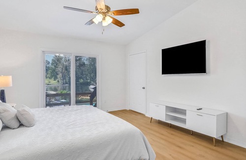 Beautifully renovated and furnished for group living, this gorgeous Jacksonville retreat is your ticket to a sunny Florida getaway. Comprising a full duplex property, this vacation rental boasts waterfront views of the Fishing Creek branch of the Ortega River and a private outdoor paradise complete with a sparkling in-ground pool, a pool house with a game room, and an attached pool deck with Adirondack seating, plus there is a gazebo with alfresco dining and a grill.