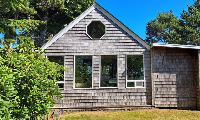 "Sea Glass Cottage" is a waterfront studio cottage with the ideal location...just steps to the sandy shoreline of the Siletz Bay. It's Cozy, with its 500 sq ft and offering a colorful and fun vibe, featuring a gas log fireplace, dining table for two, kitchen, bath and a queen designer bed with new memory foam mattress. Escape the city and live a simple life while taking time out to read, hike, relax, and even search for glass floats....