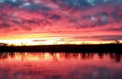 Featuring a garden, Waterfront Sunset Cabin with Patio and Firepit 2 bdrm features accommodations in Saint Joseph. Guests staying at this vacation home have access to free Wifi and a balcony. The air-conditioned vacation home is composed of 2 separate bedrooms, a fully equipped kitchen with an oven and a microwave, and 2 bathrooms. A TV is offered. For added privacy, the accommodation features a private entrance. Kansas City International Airport is 38 miles from the property.