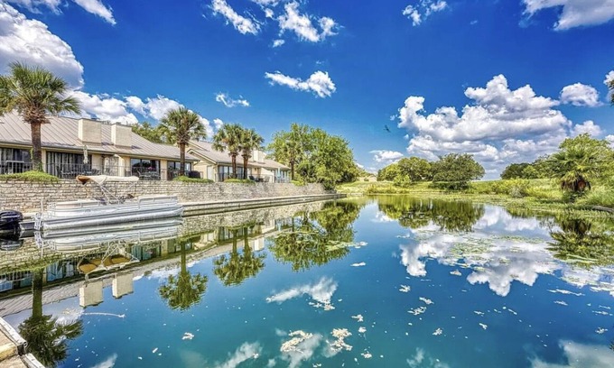 Newly decorated two-bedroom, waterfront townhome. Access to a channel that leads to the open waters of Lake LBJ with day docking for your watercraft. Fully equipped and updated kitchen. TVs in all rooms. Washer and dryer.