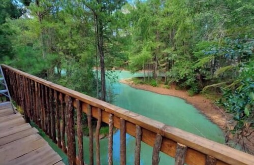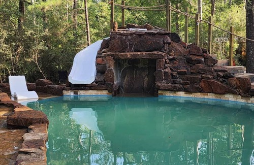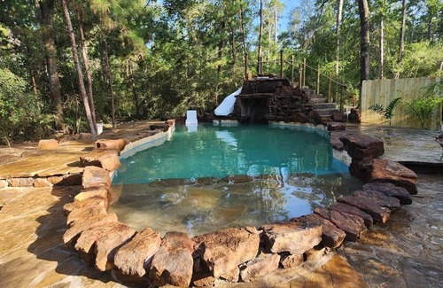 Relax with the whole family in a magical Treehouse! Your day begins sipping coffee overlooking a beautiful fully stocked one acre pond surrounded by 60 foot plus pine trees.For a adventurous afternoon imagine fishing off your front deck and taking a ride on a canoe exploring the ponds unique features such as turtles, ducks and other wild life.Experience a beautiful sunset why'll BBQing off the patio. Between the gigantic pines and pond with a fountain this makes for a perfect wedding venue! If you are looking to venture to Lake Conroe for a day trip we do have a Pontoon boat for rent that is already in a boat dock ready to go for a day trip! The kids love to go tubing and the tube is included. Message me for more information.