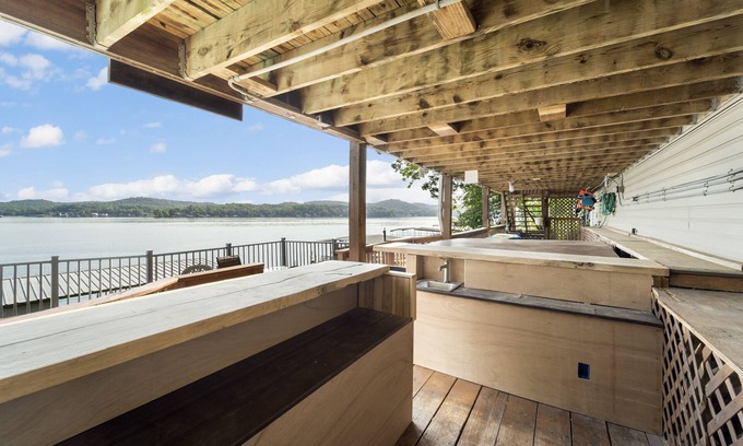 Take advantage of all the outdoor living space has to offer: a seasonal pool, hot tub, private boat dock, 2 boat slips (10’x24’) for guest use, paddle board and kayak, covered decks with outdoor seating & dining areas, a tiki bar next to the pool, rocking chairs, gas grill, lounge chairs, and the epic lake views!