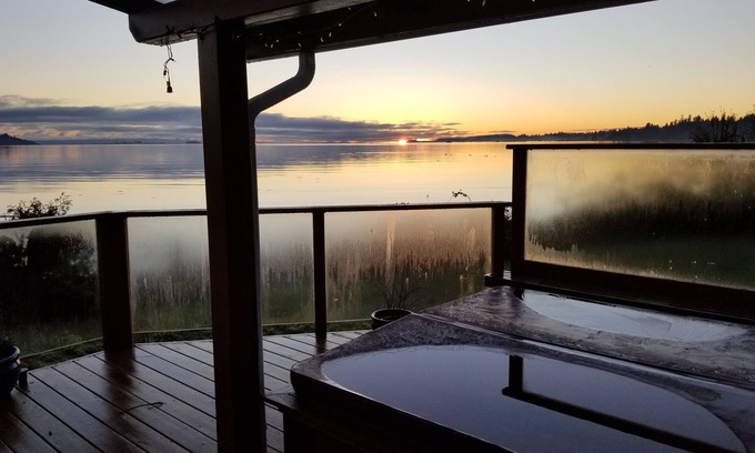 Enjoy a a private hot tub over-looking the Comox Estuary. This tastefully finished, incredibly bright WestCoast home makes you feel like you are living on a boat (when the tide is high). A bird watchers paradise. This spacious 2 bedroom house's backyard in the Comox Estuary and its front-yard is Millard park. The terminus of the most popular walking trail in the Comox Valley is at the driveway. The house is located within walking distance of a major shopping center and multiple pubs and restaurants. The expansive decks serve as a perfect spot to enjoy the sunrise over Comox Bay. Inside, there is plenty of space to enjoy the gorgeous view of the wildlife and water from a variety of cozy perches. You won't be disappointed!