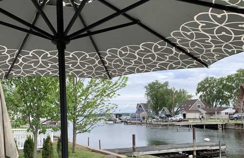 Waterfront house, with dock for your boat or jet ski! It is also close to snow mobile trails, and ice fish right out your back door! Short walk to town to enjoy restaurants, ice cream, playground and live music & food trucks on the weekends! Visit the Sodus Point light house and other historic areas! Large Master bedroom with full bathroom. Downstairs is open floorpan with lots of windows, and electric fireplace. High speed internet, Firepit outside! Drop everything and come down, we have everything you need! There are games, kites, one bike, one regular, and one electric scooter for you to use. Check out our YouTube video https://youtu.be/ULBedCBEB54