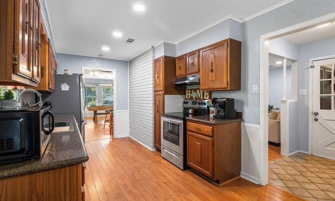 Your cozy getaway awaits in Denison at this fabulous house. With 3 bedrooms including 2 queen beds and 2 twin bed, guests will have plenty of space to relax and unwind. This property has easy access to Waterloo Lake and park. Which has Biking, fishing, hiking, kayaking & a kids park. It is minutes from Downtown Denison which has lots of shops & great places to eat. This property has spacious rooms & a great game room that is equipped with a pool table, Tv, bar table and a variety of games. The outside area has a covered sitting area and a grill . This property has a lots to offer & is ready for your stay!