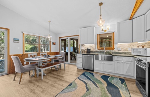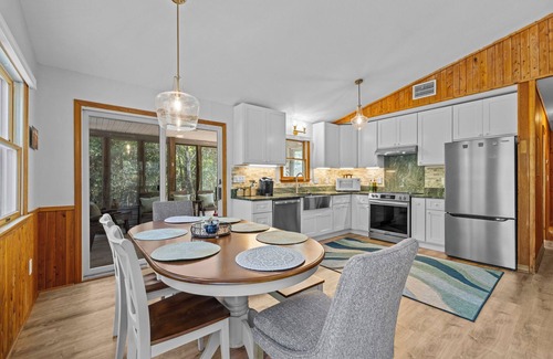 Vacation in this lovely 3-bedroom cottage in Southern Shores - just renovated with brand new kitchen appliances, smart TV in every room and luxurious bathrooms. Sleeps 8, with a king bed, queen bed, and bunk bed (twin over double w/ a twin trundle.) This retreat is perfect for families or friends looking for a beach getaway. Relax in the hot tub on the deck, read a book on the screened in porch or create memories playing games! It's easy to see why you'll be able to unwind at Wave Call.