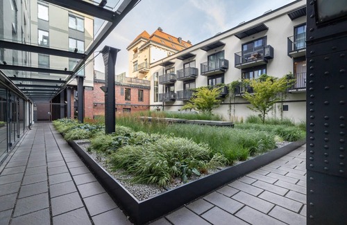 Fashionable studio apartment located in a modern residential development Wawrzyńca19 in Kazimierz, Cracow. The apartment is located on the 1st floor of the building, combining excellent location and convenience and comfort with modern development. The location of the building provides excellent access to other districts of Cracow, thanks to a thriving public transport system. The facility's location just 1 km from the Old Town offers a wide range of cultural and historical, service and culinary amenities. The center of Cracow can be reached in 5 minutes by car. Oskar Schindler's 'Emalia' Factory is 1.3 km away, the Wawel Royal Castle is 1.4 km away, and the beautiful Main Market Square winning the hearts of visitors is 1.6 km away. The location in the former Jewish district of Kazimierz, adjacent to the Vistula boulevard and close to the city center make it possible for guests to fully enjoy the charms of Cracow. Desiring a moment's respite from the hustle and bustle of the city, the Dietl Planty will be ideal for a stroll. The apartment complex also offers retail and commercial premises, providing services for the residents of the complex, such as a delicatessen, cafe, fitness center, spa.