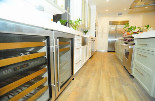 The main floor kitchen is a custom designed chefs masterpiece complete with a 48” Sub Zero Fridge, a Sub Zero Wine Fridge, a Sub Zero Beverage Fridge, a Meile Microwave, a Meile Espresso Coffee Machine complete with Cappuccino capabilities and a gourmet 36” Wolf gas Range.