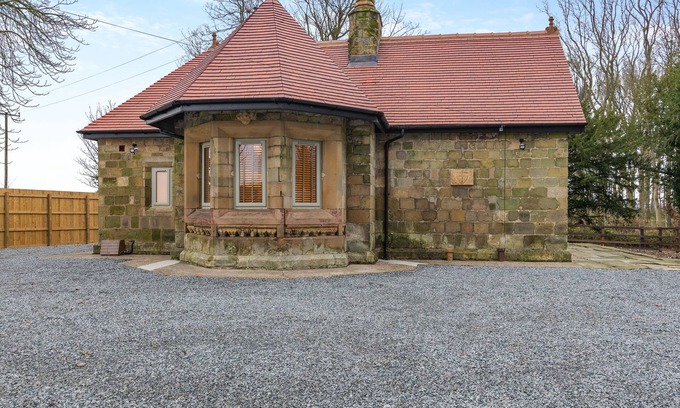 Bathroom: Bath With Shower Over, Heated Towel Rail, Toilet. Gas and underfloor central heating, electricity, bed linen, towels and Wi-Fi included. Initial fuel for wood burner included. Travel cot available on request. Back garden with sitting-out area and garden furniture. Hot tub for 4 (private). 2 small dogs welcome, to be kept on a lead at all times (sheep country). Bike store. Private parking for 3+ cars. No smoking.. South Lodge, an enchanting historic property dating back to 1834, has been beautifully restored to an exceptional standard, maintaining its original charm with features like mullioned windows and exposed beams. This cosy accommodation offers a fresh water, wood-fired hot tub and a spacious garden to relax and unwind in the evening.