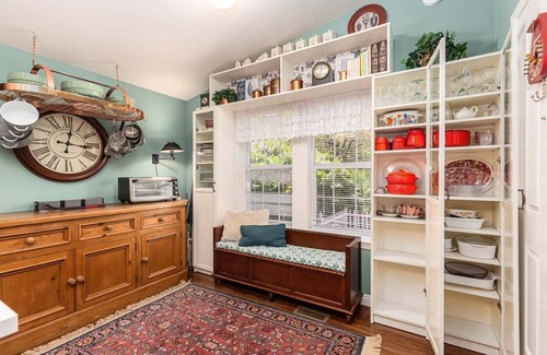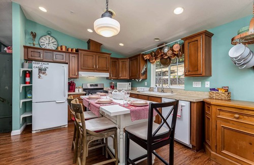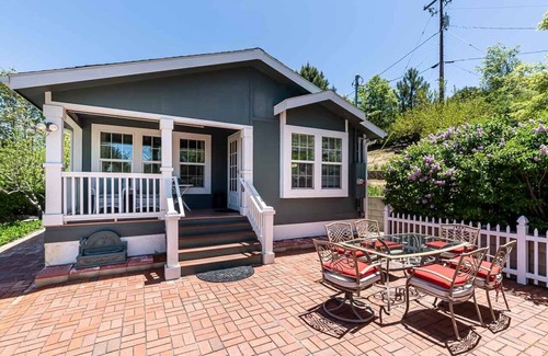 A sunny 2-bedroom 1.5 bath cabin that offers well-dressed rooms with ensuite bathrooms, a luxury mountain getaway. This charming space features an open living and dining concept, two outdoor garden dining areas, and a peaceful backyard with a gas grill, chairs and dining table. The kitchen is stocked with coffee, creamer, sugar and most of your basic cooking essentials, herbs and spices.