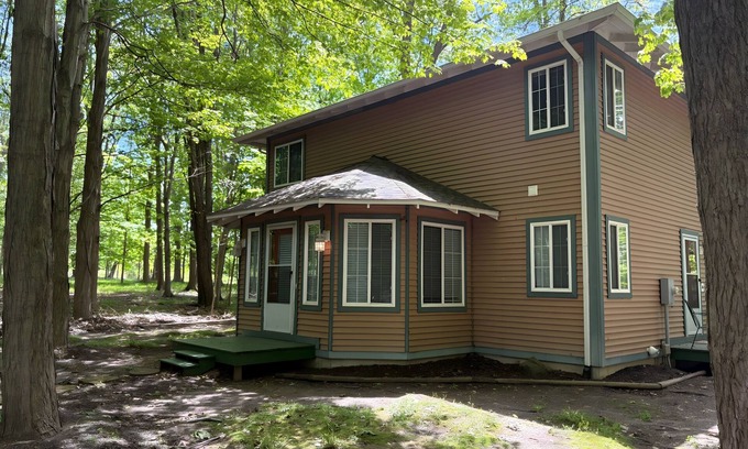 Escape the noise and get off the grid at this private beachside retreat nestled in the woods of South Haven. Just a short walk to the sand and waves, this cozy 3-bedroom cottage is perfect for families, couples, or friend groups. Roast s’mores by the fire, sip wine on the screened porch, and bring your pup too!