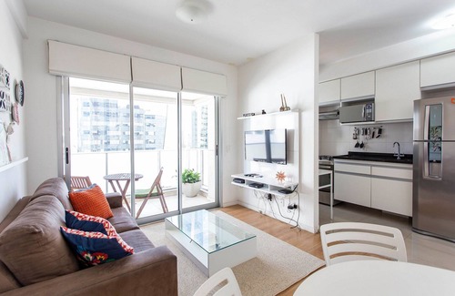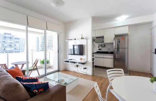 Cozy apartment next to one of the main business centers of São Paulo and Shopping Morumbi. It has a large balcony, well-equipped kitchen, bed linen and layette. The building is modern and has a complete leisure area, parking space, and an excellent location for those who come to São Paulo for work, trade fairs, exhibitions, or leisure.