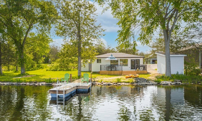 Facing the river, the back deck features beautiful views of the Trent River , a large umbrella and dinning table with seating for 6. You'll also find seating on the dock to enjoy the waterfront view while sipping on your morning coffee. The cottage also includes two kayaks and lifejackets in varying sizes. A BBQ Grill is ready for use with Propane included.