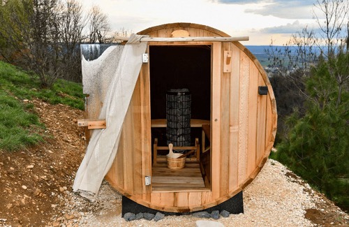 A true haven of peace, this cabin provides all the luxury and comfort (toilet, water, electricity, linen, reversible air conditioning) you are looking for. Enjoy its original architecture as well as its exceptional panorama of the setting sun and the stars.
