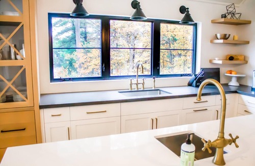Chef’s kitchen with high end appliances (gas stove, oven, dishwasher, fridge/freezer, microwave), wine cooler, 2 separate sinks, lots of counter space, Nespresso coffee/espresso machine with milk frother and a large coffee maker as well as oversized kitchen windows overlook Lake Muskoka. All pots, pans, cutlery, glassware, plates included.