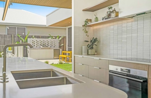 Indoors, admire the polished concrete flooring and carefully thought-out styling seamlessly bringing the outdoors in. With ducted air conditioning and ceiling fans throughout. The Kitchen becomes the heart of the home, with large Island bench and high-end appliances, not more is needed for the ultimate luxury holiday.