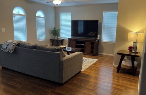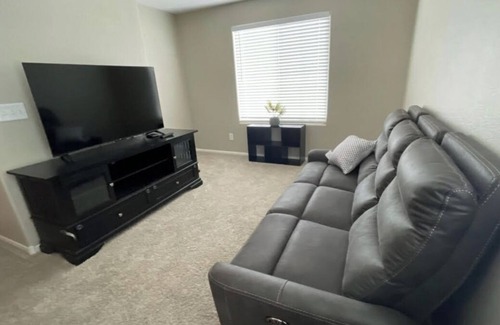 and each room has its own 4K ROKU smart tv. This home has been newly renovated with fresh paint, new carpet, new soft wood floors, all new appliances, all new beds and mostly all new furniture. The beds have led lights. The property is less than 30 minutes from the Las Vegas Strip, within minutes of Santa Fe Casino and Centennial Shopping Center, close to Mountain View Hospital, Centennial Hills Hospital, Summerlin Hospital Medical Center, University Medical Center.