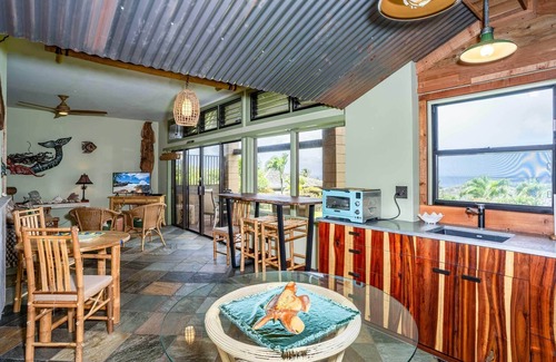 The lanai offers table seating which extends out to a manicured lawn. Chirping birds, waves, ahi poke with a cold beer is a daily celebration.