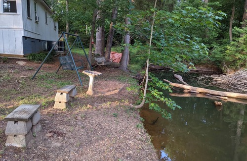 Tired of the city noise.... come visit your inner peace in our 3 bedroom, 2 bath home at the end of our cove at High Rock Lake. Enjoy an acre of land gently sloping only steps from the water and all the amenities you could wish for in our home away from home! Perfect for a couples or family vacation. Our comfy master bedroom features a king sized bed, flat screen TV, cable and private attached bathroom with stall shower. The second bedroom has a comfy queen size sleigh bed, flat screen TV with cable. The third bedroom has 4 twins (2 trundle beds). Rest on the most comfortable double size pull out couch in our large family sun room. Enjoy the living room with Flat screen TV and Roku to yourself or sit in the family sun room on the recliner and enjoy the 65 inch smart TV that offer tons of apps and a Roku (just bring your passwords) for your viewing pleasure, also included is Wi-Fi. If that doesn't suit your fancy, for that possibility of rain, enjoy our selection of novels, games, and dvd's. We have a small office area looking out on the lake for those of us who can't seem to get away from work that includes a printer/scanner. For convenience, a small bait fridge in the kitchen, a drink mini fridge and a 25 lbs per day ice machine are installed in the family sun room.... no more trips to the store every day for ice! The entire back of the house gives an exceptional view of the lake and the beautiful sunsets it offers. Enjoy some water time by docking your boat on our dock (Marina and boat launches are practically right around the corner) or use our complimentary paddle boat and kayaks. Enjoy time by stretching out on our sandy beach or watch the kids build sandcastles. Throw out a line and catch catfish, perch, crappie or bass (known to hang around our cove) straight from the dock. At night, enjoy smores by the fire pit down by the water. Put the pups to bed in our cozy, orthopedic dog beds, enjoy time with family and friends, relax and soak in the peacefulness that is this little treasure. Plenty of parking for everyone, including boat trailers. No kitty's, please. Must provide proof of current vaccinations and flea prevention.