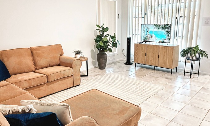 After a day of adventure, there’s no better way to relax than in the outdoor space of this modern retreat. Sip a refreshing drink under the fragrant frangipani tree, enjoy a quiet BBQ in the enclosed outdoor area, or take a short stroll to the river. If you’re in the mood for a night out, Evans Head offers a variety of dining options, from charming cafes to restaurants, clubs, and live music venues.