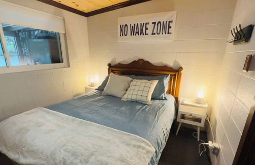 The cozy home has Queen beds in both of the bedrooms with a Queen air mattress available upon request.