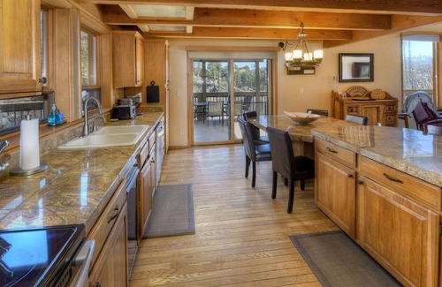 Relax w/ the whole family in this peaceful Mt. Lemmon cabin. 2 bedrooms, 3 full baths, 3 floors for lots of privacy. 1st floor has living room w/ wood burning fireplace, full kitchen w/ granite, bedroom (sleeps 4), full bath, wrap around deck w/ BBQ, fire pit & laundry room. Large loft upstairs with fully equipped office space +great wifi & private full bath w/walk in shower. Bottom floor boasts pool table, family room, queen size bedroom & bath. All beds brand new. Lots of upgrades.Welcome to The Getaway!