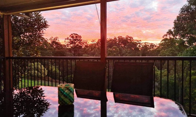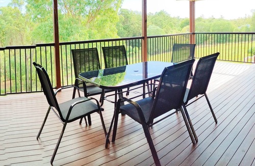 Relax with the family at this peaceful, private place to stay. This 3 bedroom home is perfect for a couples weekend getaway, or a week away with the kids. 3.5 acres of bushland, and a deck overlooking the trees, it's a touch of luxury meets homely family fun in the bush.