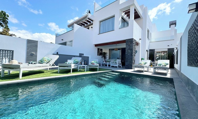 Featuring air-conditioned accommodation with a private pool, pool view and a patio, Welcome to Villa Bali a luxurious modern getaway is located in Los Cristianos.