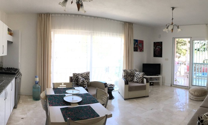 Nestled in Dalaman, this 2-bedroom, 1-bathroom villa brings it all within your reach. Fans of nature and the outdoors will love being 22 minutes by car from Sarigerme Beach and 26 minutes from Sulungur Lake. With the property's convenient onsite parking, you'll be ready to make the quick 6-minute drive to Kapikargin Sulfur Spa or the 4-minute drive to Dalaman Train Station.