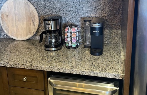 Kitchen has all the amenities of home including an airfryer, Kuerig coffee bar necessities for cooking home cooked meals, including spices as well as serving for at least eight (8). Entire condo has a filtration system to make all water safe and an additional reverse osmosis system in place for kitchen faucet as well as indoor icemaker.