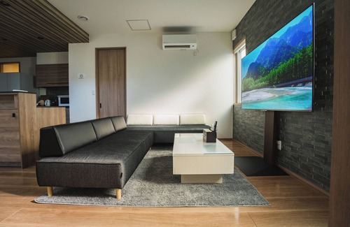 Welcome to "MarkVilla Suwa Lake," completed in 2021 by Ichijo Homes. Located steps away from JR Shimosuwa Station, this unmanned accommodation stands by the shores of Lake Suwa. The spacious 70 ㎡ room features a 75-inch TV in the approximately 20-tatami living, dining, and kitchen area, a luxurious bedroom with two double-sized beds, and a relaxing tatami room. Accommodating up to 8 guests, the entire facility is equipped with underfloor heating, ensuring comfort even on chilly days. Whether with family, friends, or that special someone, we offer a cozy space for memorable moments.