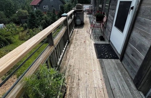 Your cozy getaway awaits you in Franklin at this lovely apartment--perfect for a couple or friends/family of six! 2 bedrooms, the back bedroom has a full and a twin, the main room has a queen bed in it and there is another twin up in a cupola! Separate shower room equipped with a hair dryer, and bucket style composting toilet in it's own room--no smell! Firepit down in front near extensive gardens, and miles of trails right out the door!