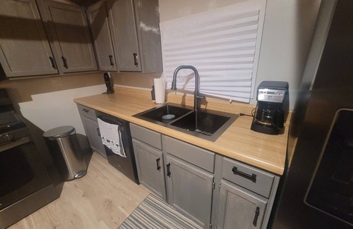 This 2-bedroom Lakefront cabin has recently been updated. Guests can relax, unwind, and explore outdoor activities. The lakehouse is located on Upper Turtle Lake with lovely views. Convenient to HWY 8, Turtle Lake, St Croix Casino, and many outdoor activities. (ATV trails, fishing, boating). The main bedroom offers a full size bed, dresser, and TV with streaming ability. The second bedroom has 2 Twin beds and a dresser. New Central heat and AC system added in 2024. Indoor washer & dryer. Kitchen with new appliances, sink, propane cooktop/oven & dishwasher. Large family room with vaulted ceiling and skylights, fireplace, TV for streaming, and a cozy chaise couch with sofa sleeper (full size). Lots of cozy spots to relax and enjoy the view. Remodeled bathroom with shower. Second 1/2 bathroom. New laminate hardwood flooring. Wood plank ceilings in bedrooms & kitchen. Deck in back facing the lake. Steps down to lake with a dock. Yard space for outdoor enjoyment. Detached garage with auto opener & room for a car. We'll be available to answer any questions while you stay at our place. We do not accept pets at this cabin. Young children welcome - however, be aware this is a lake front property with steps and steep bank to lake - not ideal for all. There is a nice flat grass area for play/relaxing.