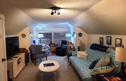 Food & DrinkTea/Coffee maker, Bottle of waterBathroomConditioner, Walk-in shower, Shower cap, Body soap, Shower, Towels, Bathtub or shower, Private bathroom, Toilet paper, Hairdryer, Toilet, Free toiletries, ShampooGeneralSmoke Alarm, Safe, Fan, Carbon monoxide detector, Private entrance, Key access, Hardwood or parquet floors, Air conditioning, Carbon monoxide sources, Carpeted, Soundproof, Iron, Fire extinguisher, Heating, Trash cansMedia & TechnologyFlat-screen TV, CD player, TV, Streaming service (like Netflix), Radio, Pay-per-view channelsOutdoorsOutdoor dining area, Patio, Balcony, Outdoor furniture, BarbecueKitchenMicrowave, Kitchenware, Refrigerator, Toaster, High chair, Kitchen, Cleaning products, Oven, Stovetop, Electric kettle, Wine glasses, Dining tableLiving AreaDining area, Desk, Sitting area, SofaBedroomWalk-in closet, Linens, Alarm clock, Wardrobe or closet, Childrens' cribsAccessibilityUpper floors accessible by stairs onlyBuilding CharacteristicsDetached, Private apartment in buildingEntertainment & Family ServicesBoard games/puzzles, Books, DVDs or music for children, Child safety socket covers, Baby safety gatesRoom AmenitiesNon-feather pillow, Socket near the bedViewQuiet street viewPhysical distancingSingle-room AC for guest accommodation |