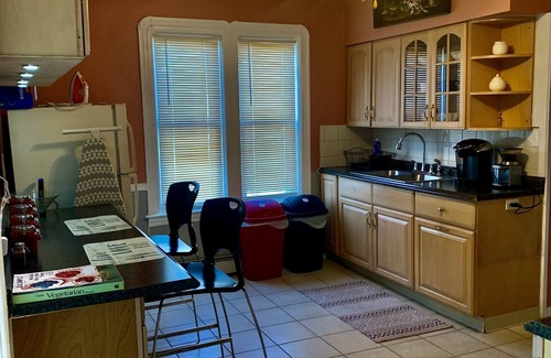 Spacious 4 bedrooms (Queens size in each bedroom 🛌), living room very comfortable electric reclining seats, cup holders, compartment with USB charging!, 1.5 baths, It is located on 3RD FLOOR, in the upcoming creative & business district of Downtown Pawtucket RI.