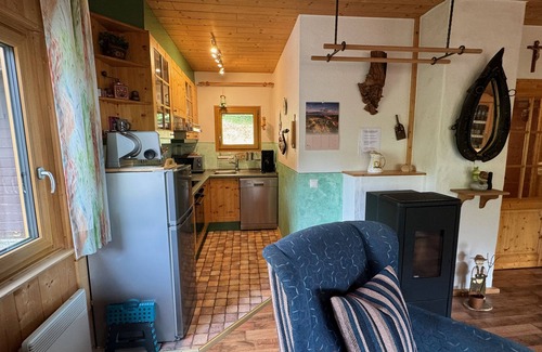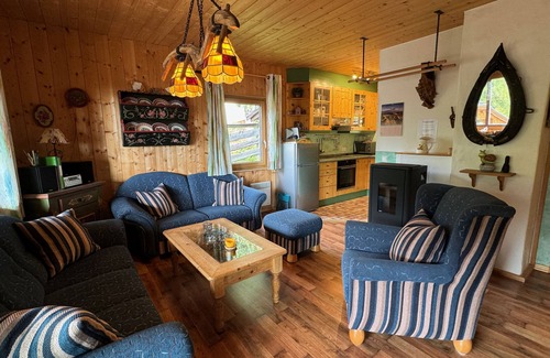 Spend your holiday in the Zirmach hut, which is suitable for 2 - 6 people. The lovingly furnished cottage is comfortably furnished on 2 floors on 100 sqm and has 5 rooms, kitchen and 2 bathrooms: It has a living room with comfortable sofa, wing chair, pellet stove and balcony.