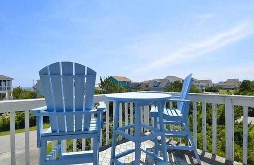 Decks to Sea is your home away from home! It underwent great changes recently. Carpets and flooring, new washer and dryer. All 3 bathrooms renovated. New fixtures, bedding, lighting and furniture all throughout the house! There are also nice, new flatscreen TV's in 2 of the bedrooms. This home has a spacious reverse floor plan. The entire top floor is a great room/kitchen/dining combo with cathedral ceilings and a half bath; all paneled in juniper with big windows opening to vistas of the nearby ocean, the historic Bodie Island Lighthouse and sunsets over the sound waters to the west. The four bedrooms on the first floor up are divided by a central hall. The two bedrooms on each side of the hall share a full bath. The ocean front bedrooms open onto a covered porch which has a stair up to the large sundeck off the great room. This is a great arrangement for two families. Quiet yet convenient location bordered by National Seashore, 3 blocks to beach, lots of activities for kids within a short walk. Central air, color TV, dvd player, charcoal grill, private hot/cold outside shower, internet access. Washer/dryer, dishwasher, microwave, blender, Keurig and drip coffee-makers, Top-level sundeck off great-room w/ great views, covered deck below w/swing accessed from 2 of the bedrooms.