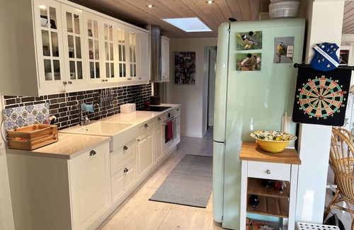Cozy living room where you can relax in front of the TV with adjacent dining room. From here you come directly out onto the patio deck, an ideal place for relaxation and social moments under the open sky. The modern kitchen is fully equipped and ready for culinary adventures. With three spacious bedrooms, there is plenty of room for everyone. One with a double bed, one with a bunk bed and one with a sofa bed. Two nice fully tiled bathrooms where you have a washing machine in one.